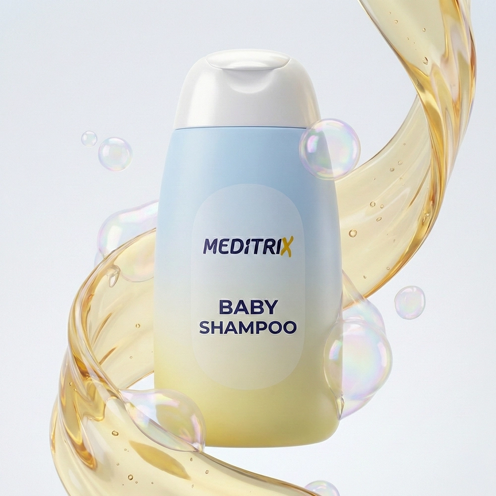 A mild, tear-free baby shampoo enriched with natural conditioners to cleanse hair without dryness. Helps maintain scalp hydration and promotes soft, tangle-free hair.